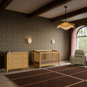 Mid-century modern, meet craftsman charm in the babyletto Sprout 3-drawer Changer Dresser. Versatile in design and function, this dresser seamlessly moves from the nursery to a big kid room. A removable changer top with a sectioned tray keeps those diaper-changing supplies within reach. Three spacious, smooth-glide drawers provide ample space for a growing babe’s wardrobe. Pair it with the Sprout 4-in-1 Convertible Crib for a classic mid-century modern nursery.