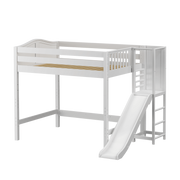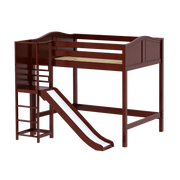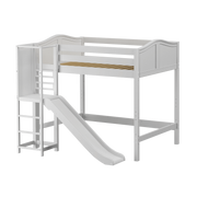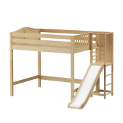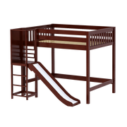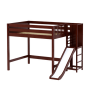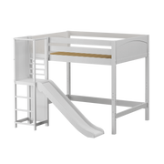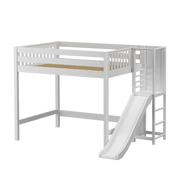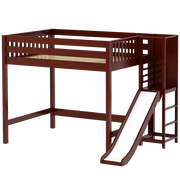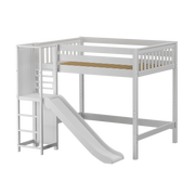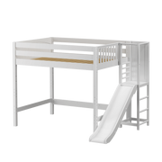 Our new slide platform turns up the fun on a high loft! Platform doubles as entry way to top and is positioned at the bed end so slide starts further back, saving floor space. Full size = extra room for growing children, sleepovers or snuggling with parents.