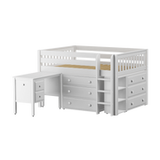 Maxtrix Full Low Loft Bed with Straight Ladder, Storage + Desk