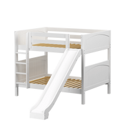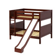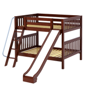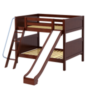 We added a slide to our best-selling style for the ultimate combination of fun and function. Full size = extra room for growing kids, sleepovers or snuggling with parents. Medium height bunk designed with more space between beds, but still safe enough little ones + fits average ceilings.
