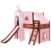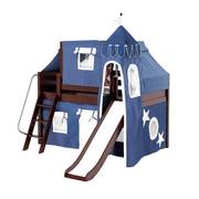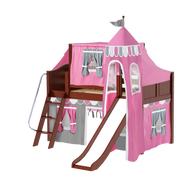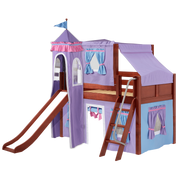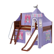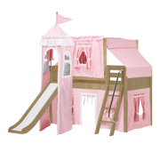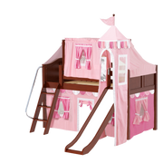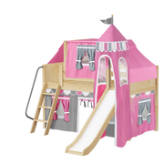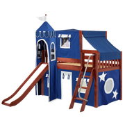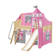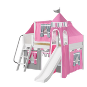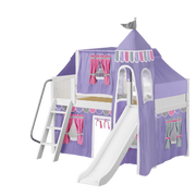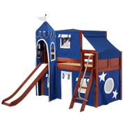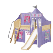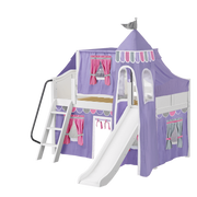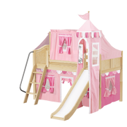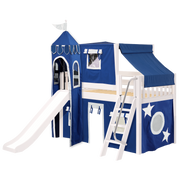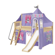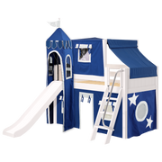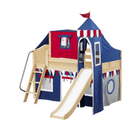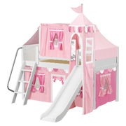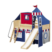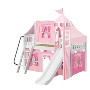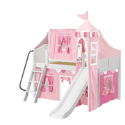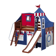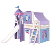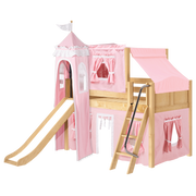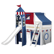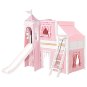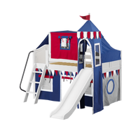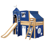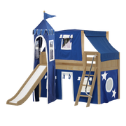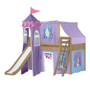 Maxtrix Twin Low Loft Bed with Angled Ladder, Curtain, Top Tent, Tower + Slide