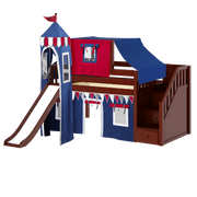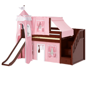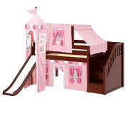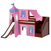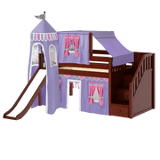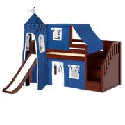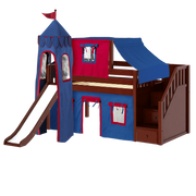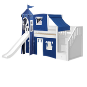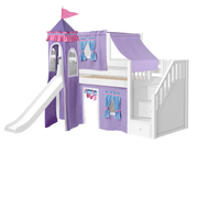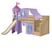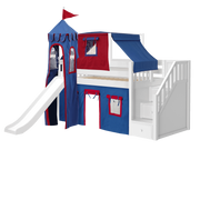Maxtrix Twin Low Loft Bed with Stairs, Curtain, Top Tent, Tower + Slide