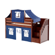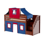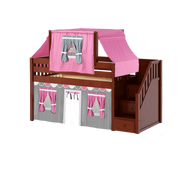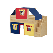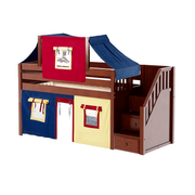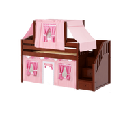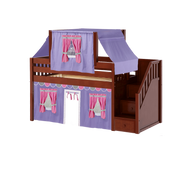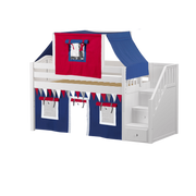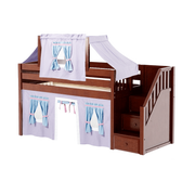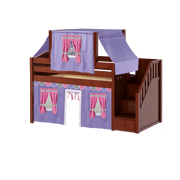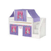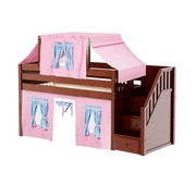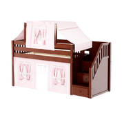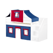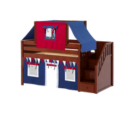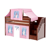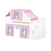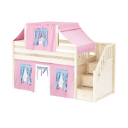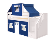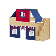 Maxtrix Twin Low Loft Bed with Stairs, Curtain + Top Tent