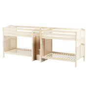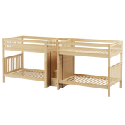 This Quadruple Bunk is two traditional Full High Bunk Beds connected by a staircase in the middle. Designed as a space-saving way to sleep four, it’s the perfect solution for a shared bedroom or vacation home. Added bonus, stairs double as drawers for built in storage!