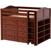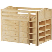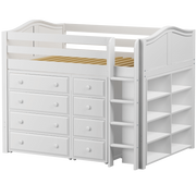 Gain storage without losing floorspace! This full-size mid loft combo is the perfect solution for anyone tight on space or just wanting to keep rooms tidy + organized.