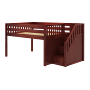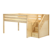 The perfect intro to a raised bed – now 4” longer to accommodate growing children.  At only 50.75" tall, our best selling low loft is ideal for small rooms and safe for little ones. Space for sleep, study and play all one place = fun + function.