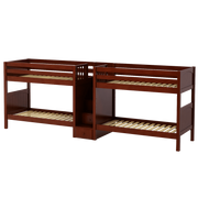 This Quadruple Bunk is two traditional Twin Medium Bunk Beds connected by a staircase in the middle. Designed as a space-saving way to sleep four, it’s the perfect solution for a shared bedroom or vacation home. Added bonus, stairs double as drawers for built in storage!