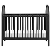 The Bondi Cane 3-in-1 Convertible Crib celebrates boho-inspired design and natural materials with its warm wood tone, playfully arched side panels, curved feet, and woven plant-based cane. The Bondi is designed to grow with your babe using an included toddler bed conversion rail and is screened for harmful chemical emissions to ensure it meets GREENGUARD GOLD Certification.