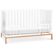 The Luma Crib seamlessly integrates form and function in the nursery space. The crib marries our signature acrylic aesthetic with an au courant rose gold touch. With four clear sides perforated by defined slats, the Luma creates an airy space for baby to play, relax and sleep, and allows you to have a clear view of baby from anywhere in the nursery.