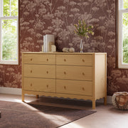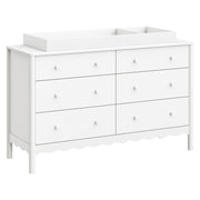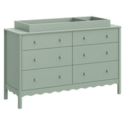 With rounded posts and wave-like edges, the Swell 6-Drawer Assembled Dresser has a modern appeal with an ocean-inspired design that pairs perfectly with the Swell 4-in-1 Convertible Crib. Featuring six spacious and smooth-gliding drawers, this dresser provides ample space for all of your baby's necessities. With additional versatility to add an optional removable changing tray, the Swell Assembled Dresser is perfect storage solution for your newborn and beyond.