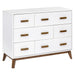 The Scoot 6-Drawer Dresser is the definition of mid-century modern style. The perfect accompaniment to your Scoot 3-in-1 Crib with matching tapered feet and two-toned or solid color detailing. With six smooth-glide drawers, this versatile unit provides a range of practical storage possibilities to suit all of your nursery needs.