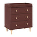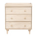 Enjoy the playful modern design of the Lolly 3-Drawer Changer Dresser! With natural curves and delicate natural feet that compliments the Lolly 3-in-1 Convertible Crib. Designed especially for the nursery with an included removable changing tray, smooth-glide drawers, hidden hardware, and included anti-tip kit.