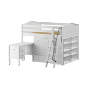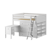 Maxtrix Full Mid Loft Bed with Angled Ladder, Storage + Desk