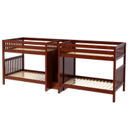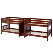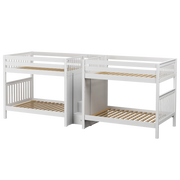 This Quadruple Bunk is two Full XL Bunk Beds connected by a staircase in the middle. Designed as a space-saving way to sleep four, it’s the perfect solution for a shared bedroom or vacation home. Added bonus, stairs double as drawers for built in storage.