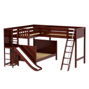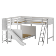 Maxtrix High Twin over Full Corner Loft Bunk Bed with Ladder + Slide Platform