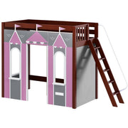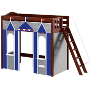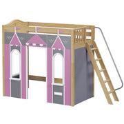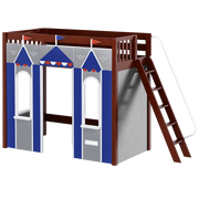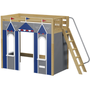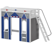 We created the ultimate indoor castle by adding colorful play panels to our best-selling high loft! Over 4 ft of underbed clearance is perfect for play today, and great for storage or study tomorrow as kids get older. Angle ladder sticks out at a slant + features handrail for easy climbing.