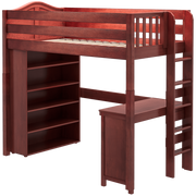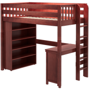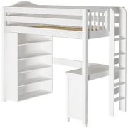 Sleep, Storage & Study! This all-in-one, compact design is the perfect addition to your child's bedroom. High loft bed with bookcase on one end and desk at the other creates an ideal study nook, without losing valuable floorspace.