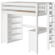 Maxtrix Twin High Loft Bed with Straight Ladder on end, Storage + Desk