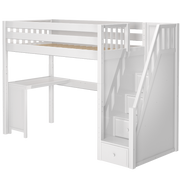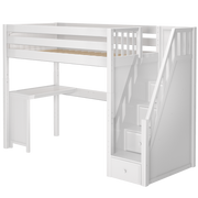 Maxtrix Twin High Loft Bed with Stairs + Corner Desk