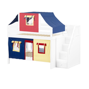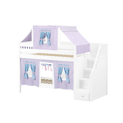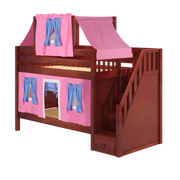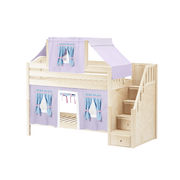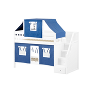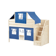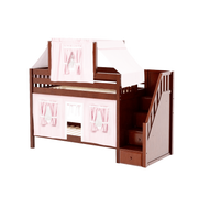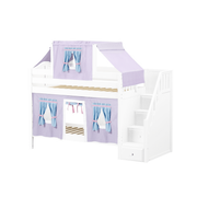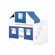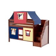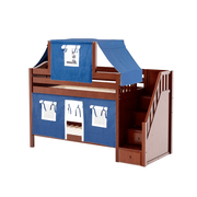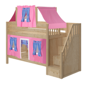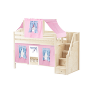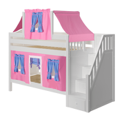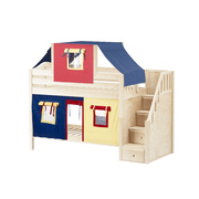 Maxtrix Twin Low Bunk Bed with Stairs, Curtain + Top Tent