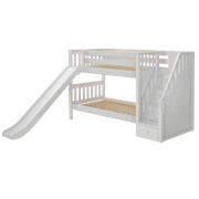 Maxtrix Twin Low Bunk Bed with Stairs + Slide