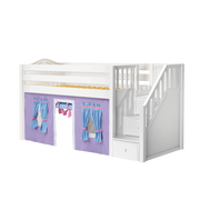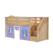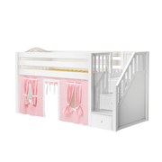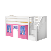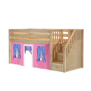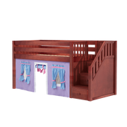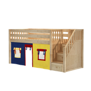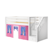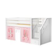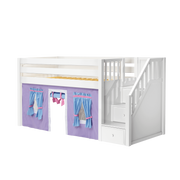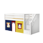 Maxtrix Twin Low Loft Bed with Stairs + Curtain