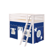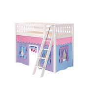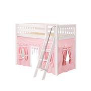 Maxtrix Twin Mid Loft Bed with Angled Ladder + Curtain