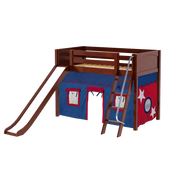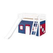 Maxtrix Twin Mid Loft Bed with Angled Ladder, Curtain + Slide