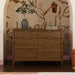 • BOHO-INSPIRED AESTHETIC: The Bondi 6-Drawer Dresser celebrates boho-inspired design with its warm wood tone, rounded posts and tonal vegan leather drawer pulls. Plus, our hidden hardware construction eliminates visible screws on the furniture exterior for a polished, clean look.