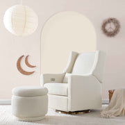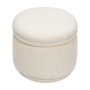 The Enoki Storage Ottoman is as functional as it is stylish, with its round, stacked look and ample storage for all of your baby's extra sheets and blankets. Upholstered by hand in our texture-rich boucle fabric, this trendy ottoman can be paired with any seating to create a statement piece in your nursery or home.