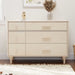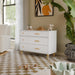 One little babe…so much stuff! The Lolly 6-drawer Double Dresser can store it all! Designed with spacious smooth-glide drawers, hidden hardware, requiring minimal assembly and includes an anti-tip kit. With natural curves and tapered playful feet, the Lolly 6-drawer Double Dresser is a perfect complement to the Lolly 3-in-1 Convertible Crib while being versatile enough to match any modern home decor.