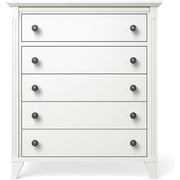Edison Tall Chest takes a minimum amount of floor space and offers a maximum amount of drawer storage. It features five deep drawers equipped with hydraulic soft-closing systems. Edison Chest is the ideal baby furniture solution for safe and healthy nurseries.