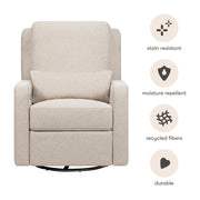 The Sigi Glider Recliner is a stylish choice with its crisp, modern design and comfortable seat on a light wood base. Effortlessly glide back and forth in an upright position to rock your baby to sleep, or lean back and relax at the touch of a button with this recliner's quiet electronic control button. Upholstered by hand in our eco-performance fabric that is stain resistant, water repellent, and made with at least 30% recycled fiber, it is a more sustainable choice for your baby and home.
