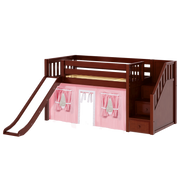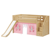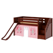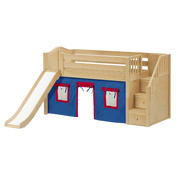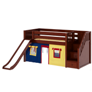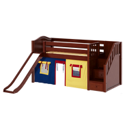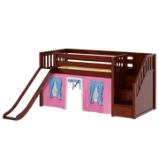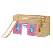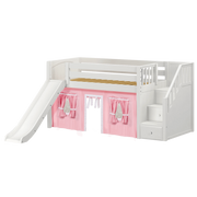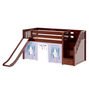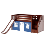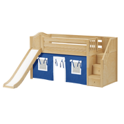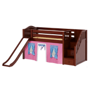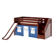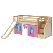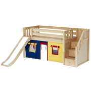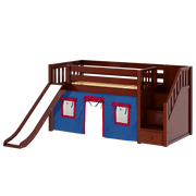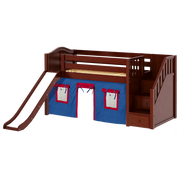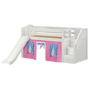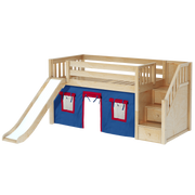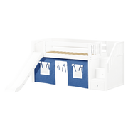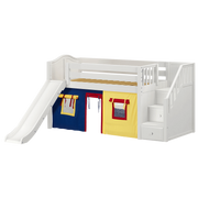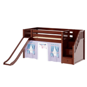 Maxtrix Twin Low Loft Bed with Stairs, Curtain + Slide