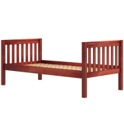 This Maxtrix system core bed is designed with higher bed ends (35.5 in), to create more space between top and bottom bunks. Our Twin XL Basic Bed with medium bed ends serves as the foundation to a medium height bunk. Also fully functional as is, or capable of converting to a loft or daybed.