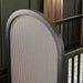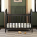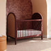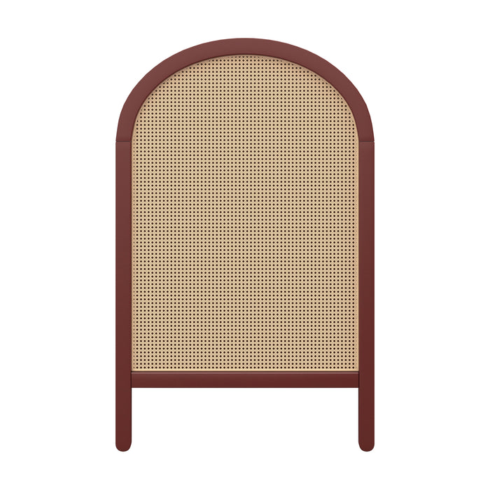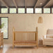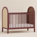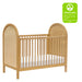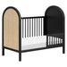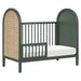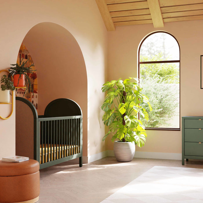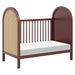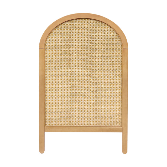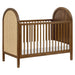 The Bondi Cane 3-in-1 Convertible Crib celebrates boho-inspired design and natural materials with its warm wood tone, playfully arched side panels, curved feet, and woven plant-based cane. The Bondi is designed to grow with your babe using an included toddler bed conversion rail and is screened for harmful chemical emissions to ensure it meets GREENGUARD GOLD Certification.