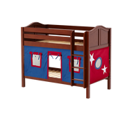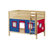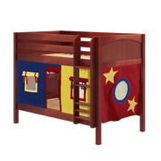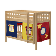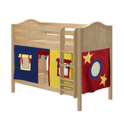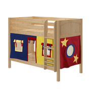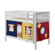 Maxtrix Twin Low Bunk Bed with Straight Ladder + Curtain