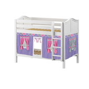 We added colorful fabric curtains to our classic low bunk to create an adorable playhouse bed. Straight ladder sits flush against the bedside rails for a clean finish and easy trundle or storage drawer use. Stacked design is a space-saving way to sleep two in one bedroom.