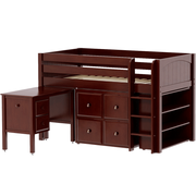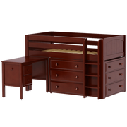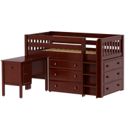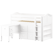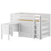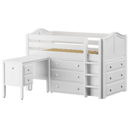 Our classic low loft bed with straight ladder becomes the ultimate storage + study cube! Create your ideal combination of matching case goods, all designed to fit perfectly. Desk pulls out easily when its time for homework then slides back underneath. Each piece is freestanding so you can also use separately.