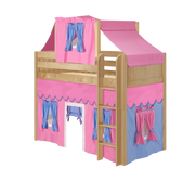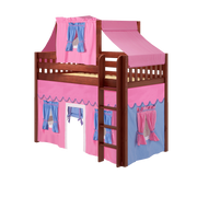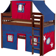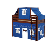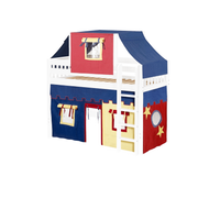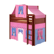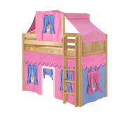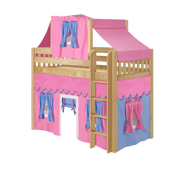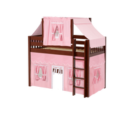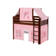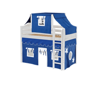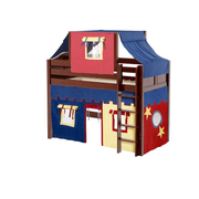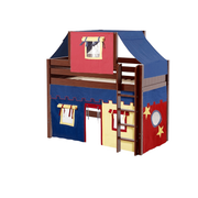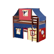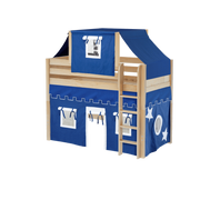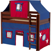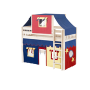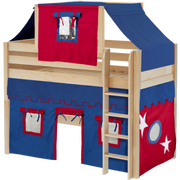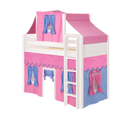 Our best-selling mid loft bed gets an extra dose of fun with the addition of colorful fabrics. Curtains + matching top tent will inspire your child’s imagination during the day and help them sleep soundly at night. Space saving straight ladder sits flush against the bed.