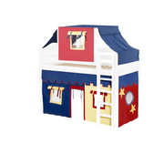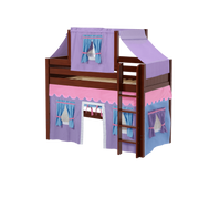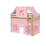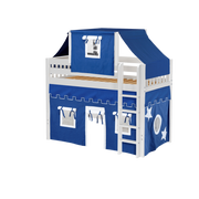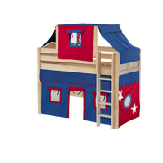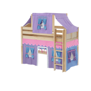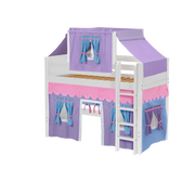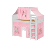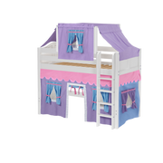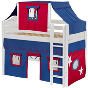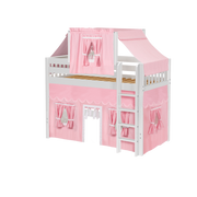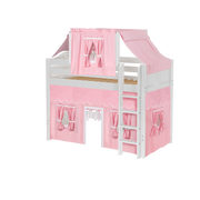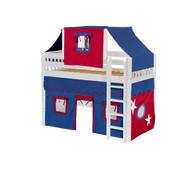 Maxtrix Twin Mid Loft Bed with Straight Ladder, Curtain + Top Tent
