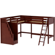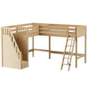Maxtrix Twin XL High Corner Loft Bed with Ladder + Stairs - L